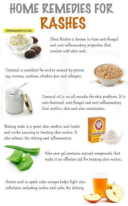 Leave the rash open to the air as much of the time as possible. Sometimes petroleum jelly (Vaseline) can help relieve the discomfort caused by a rash. A moisturizing lotion may also help.