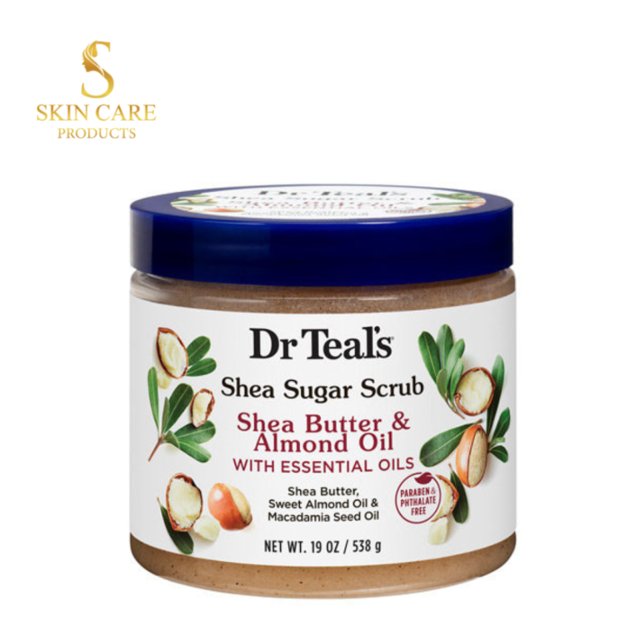 Dr Teal’s Shea Sugar Body Scrub is formulated with Shea Butter, Sugar, and Essential Oils to exfoliate and smooth skin. Essential oils help soothe the mind, while shea butter, sweet almond oil and macadamia seed oil leave the skin moisturized.