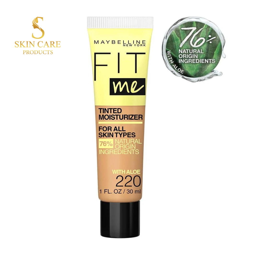 Fit Me Tinted Moisturizer face makeup. This lightweight tinted moisturizer provides a fresh feel and natural coverage with 12H hydration. 76% natural origin ingredients with aloe.